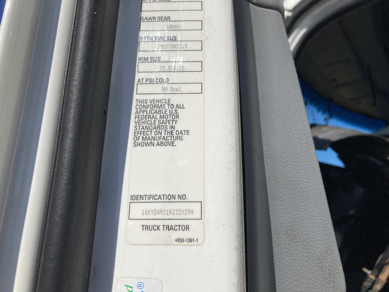 | VIN: | 1XKYD49X1KJ220294 |